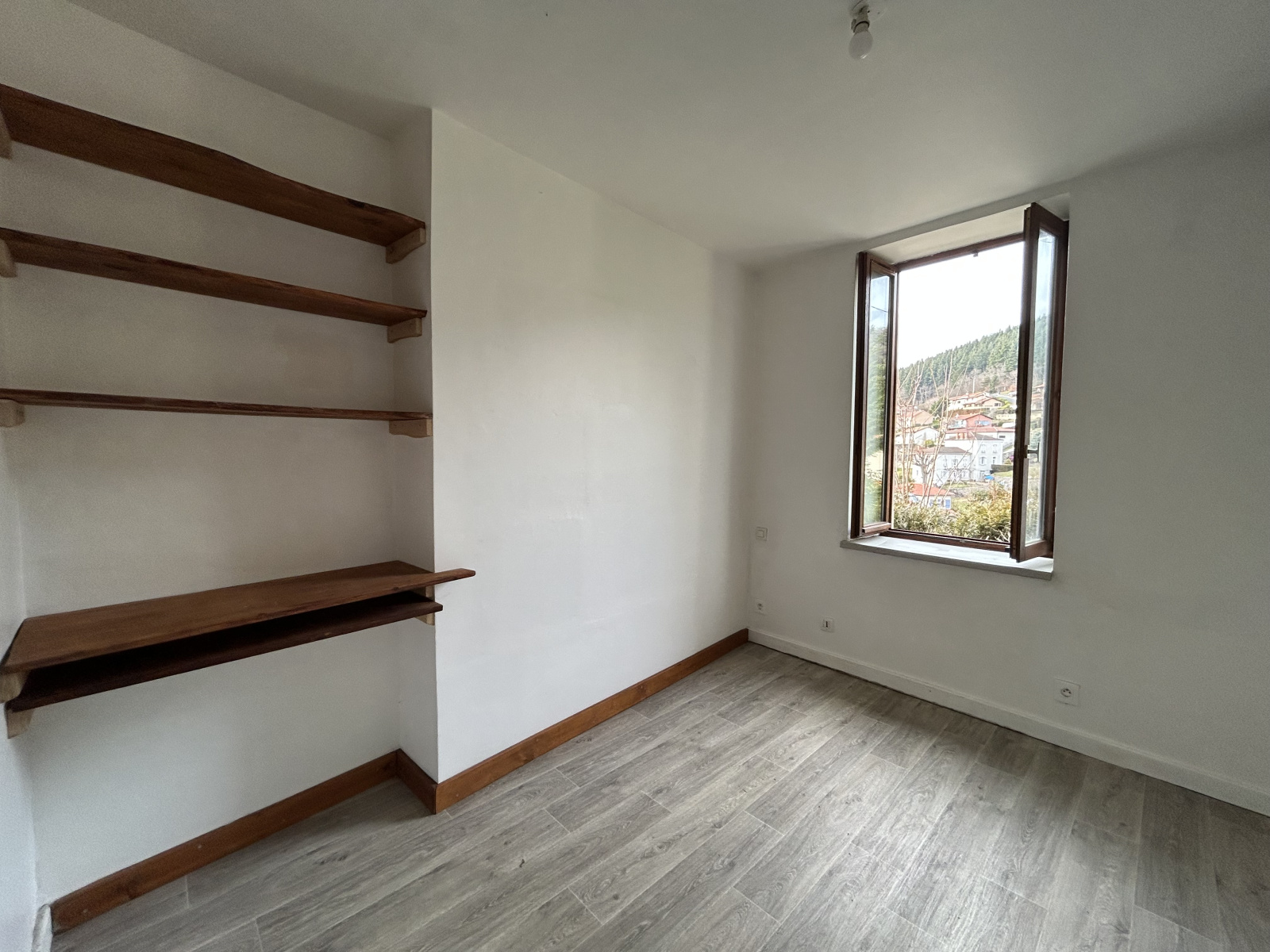Au rez de chaussée d'un petit immeuble familial, il est composé d'un séjour avec accès à la terrasse d'environ 22m², une cuisine séparée, une chambre, un bureau ou chambre d'enfant de 7m², et une salle d'eau avec WC.