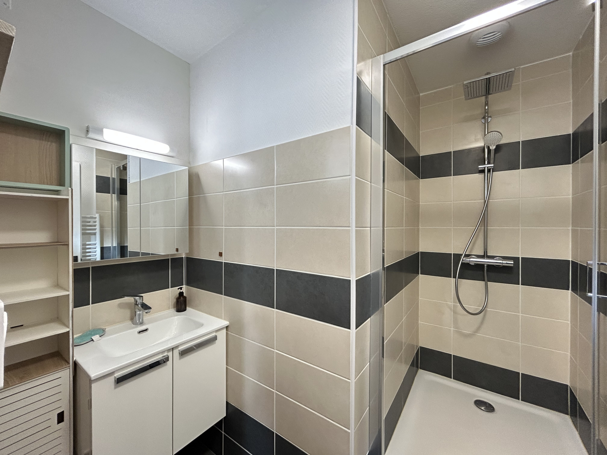 Au 1er et dernier étage d'un petit bâtiment, il est composé d'une entrée desservant toutes les pièces : Un salon, une cuisine séparée entièrement équipée donnant sur le balcon, une chambre avec un placard, une salle d'eau et WC séparés.