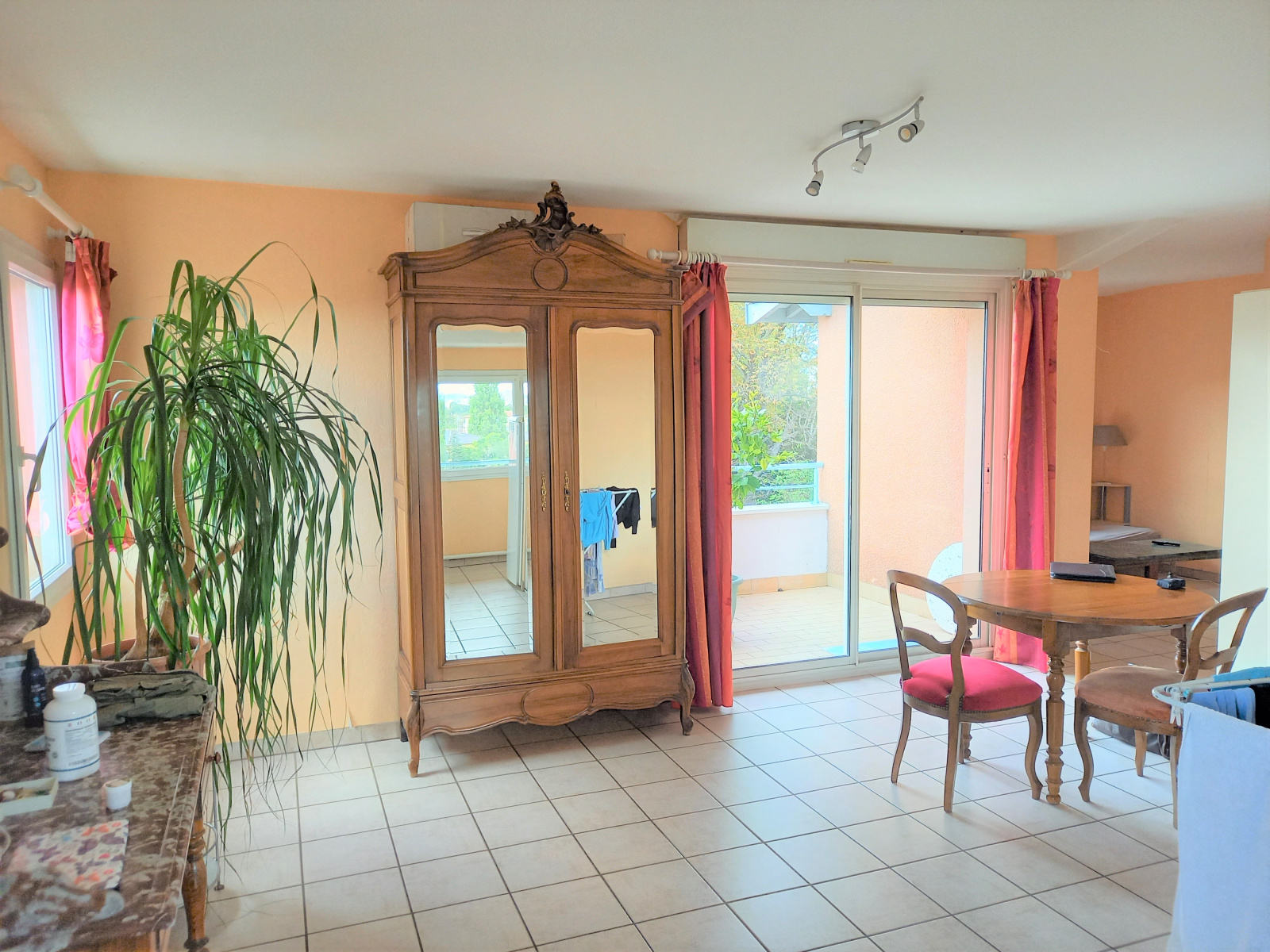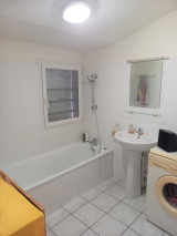 L'appartement est loué avec une cave privative de plus de 7m², une place de parking privée et un garage fermé de 13.2m² avec l'électricité.