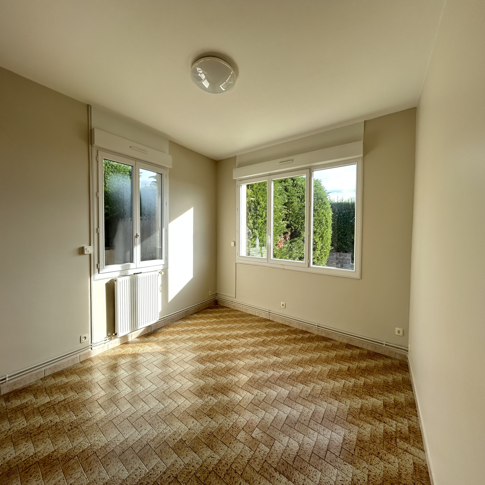 Composée d'une entrée, une cuisine ouverte sur un grand séjour lumineux, 3 chambres, une salle de bains et WC séparés, elle donne accès à un grand jardin d'environ 300m² avec terrasse et parking.
