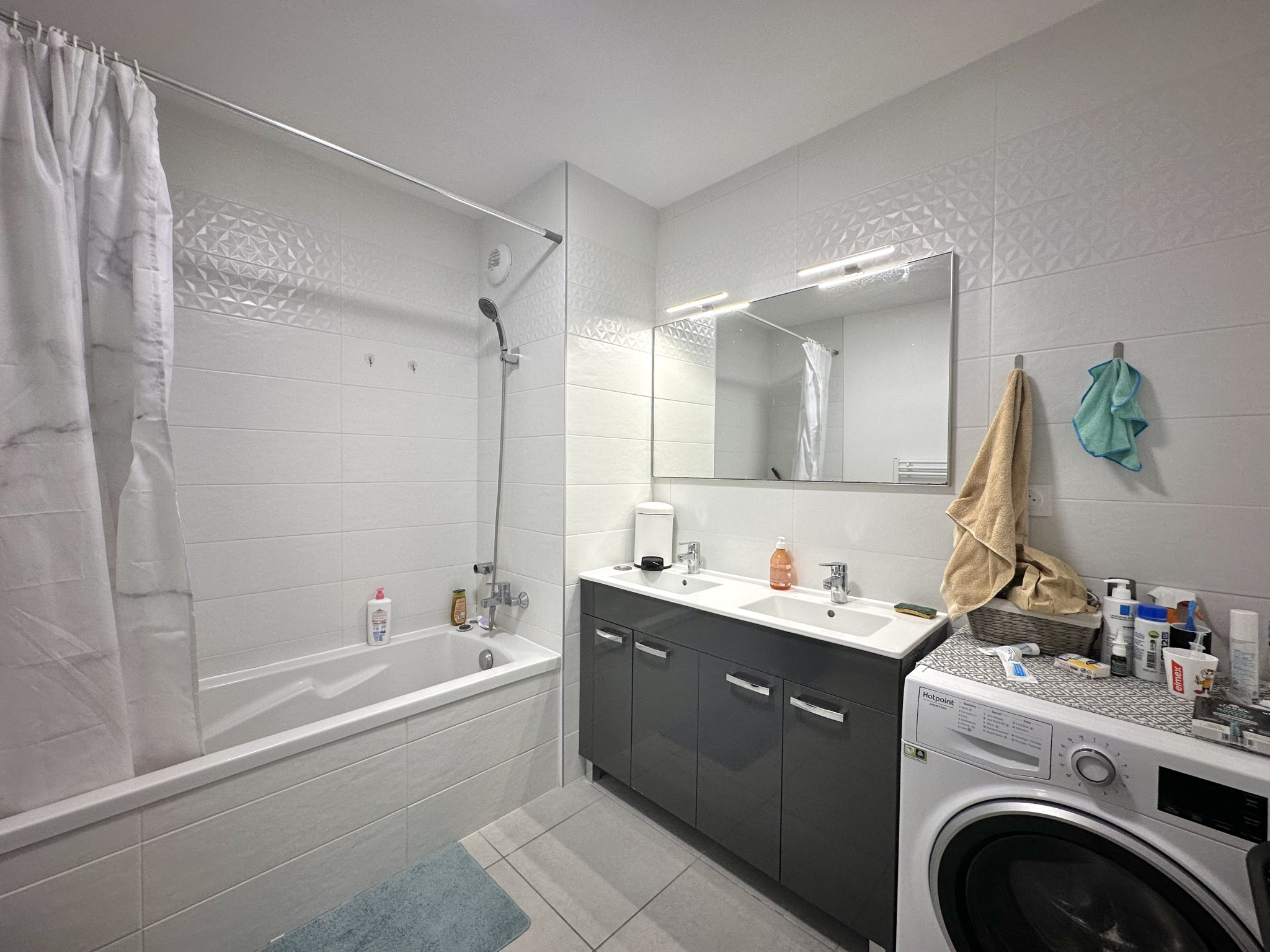 L’appartement se compose d’une entrée avec placards, de trois chambres dont deux avec rangements intégrés, d’une spacieuse salle de bain, d’un WC indépendant avec lave-mains et d’un cellier fonctionnel.