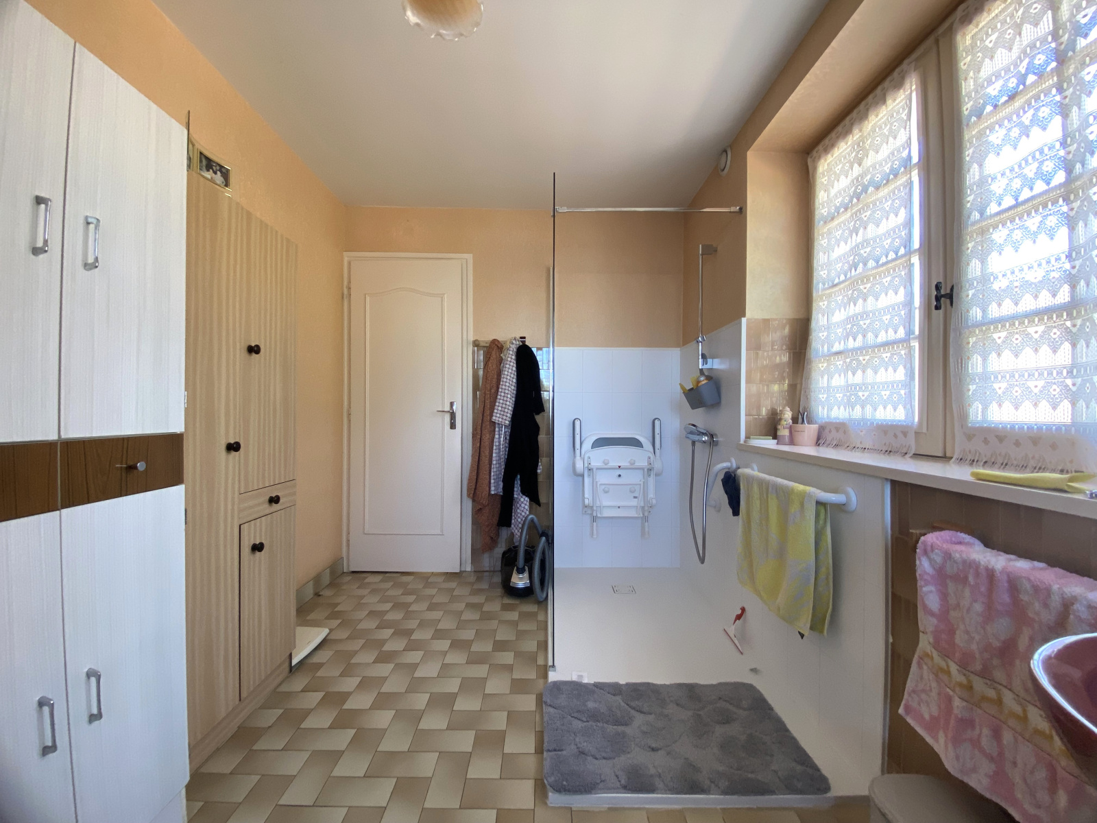 Le rez-de-chaussée, permettant de vivre de plain-pied, offre une lumineuse pièce de vie accompagnée d'une cuisine indépendante donnant sur une vaste terrasse d'environ 40 m², une chambre et une salle de douche avec WC. A l'étage : 4 chambres, une salle de douche et un WC.
