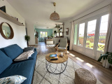 L'appartement est composé d'une vaste pièce de vie lumineuse comprenant une cuisine équipée ouverte sur un salon, offrant un accès direct sur le balcon. Il comprend également deux chambres, une salle de douche et des WC séparés.