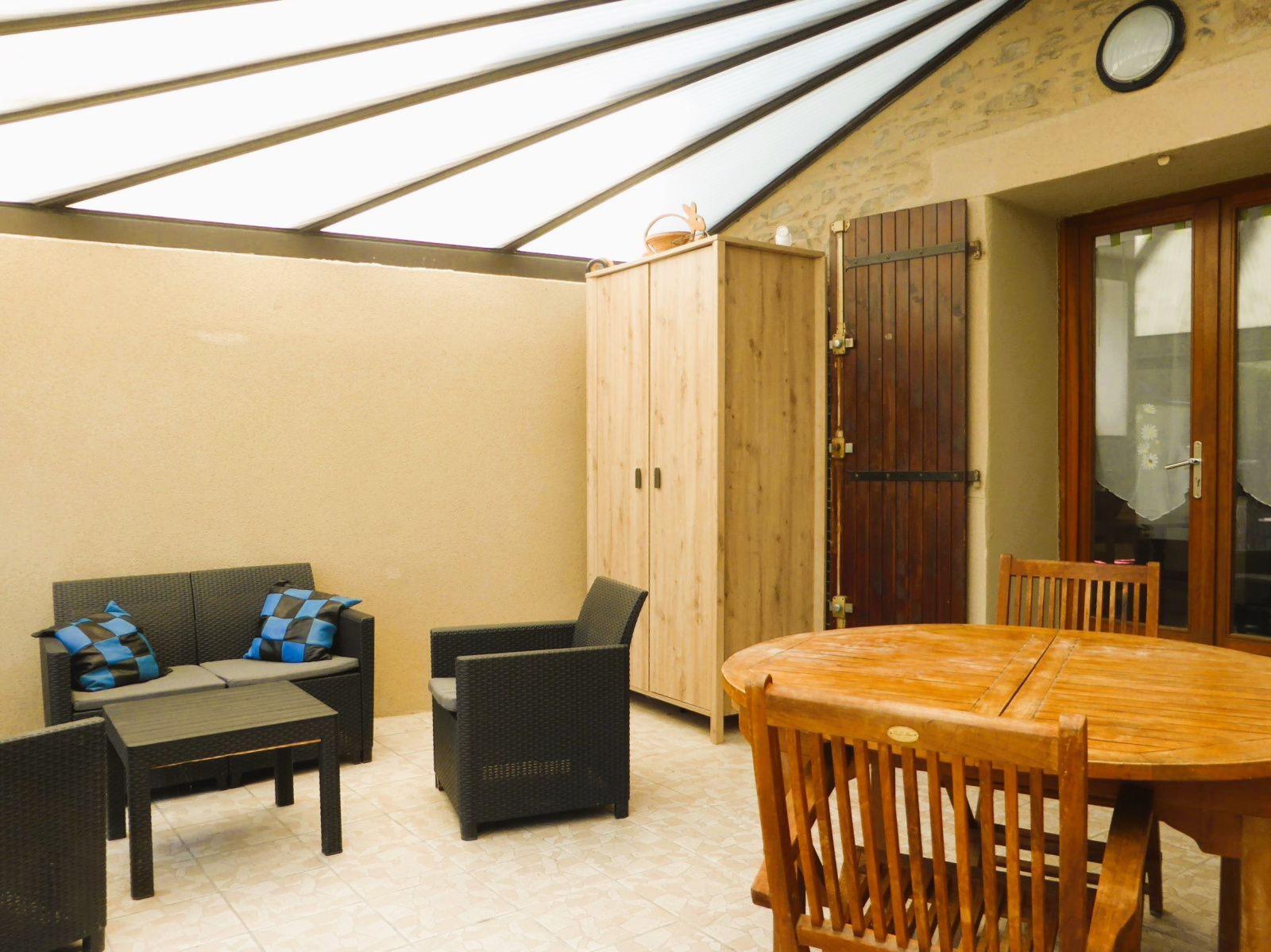 Au RDC se trouve un grand espace de vie avec une cuisine équipée, un séjour et une belle véranda non comptablisée dans la surface habitable; ainsi que la salle de bains.
