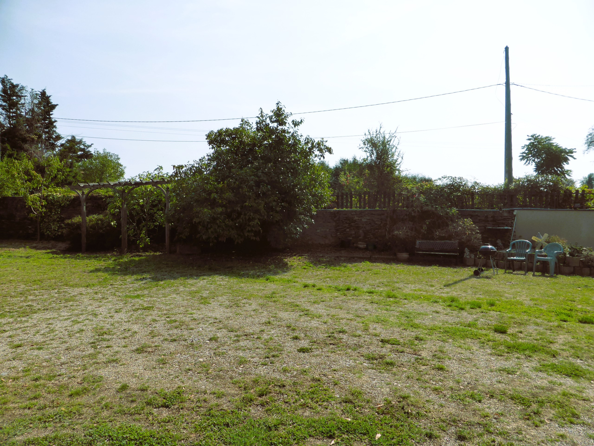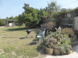 Agréable terrain attenant et plat de 770m², clôturé avec portail électrique coulissant et un garage fermé.