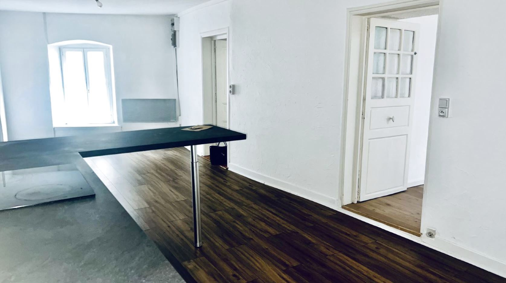 Il se trouve au 1er étage de l'immeuble est est composé d'une pièce de vie ouverte rafraîchie récemment avec coin cuisine, 2 chambres, une salle d'eau et un WC séparé.
